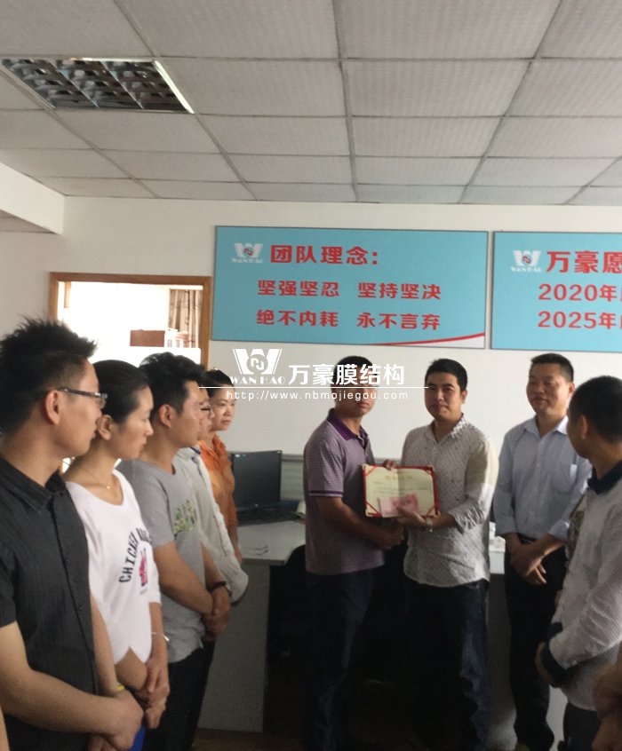 為了提高員工工作積極性,表彰先進,樹立典型,鼓勵更多的職工在工作崗位成長成才,在晨會上對設計部陳斌進行了獎勵,設計部經理為其頒發了榮譽證書和獎金,同時希望其他員工好好的向優秀員工學習,努力在工作中不斷創新,積極進取,為公司的發展貢獻自己的力量。