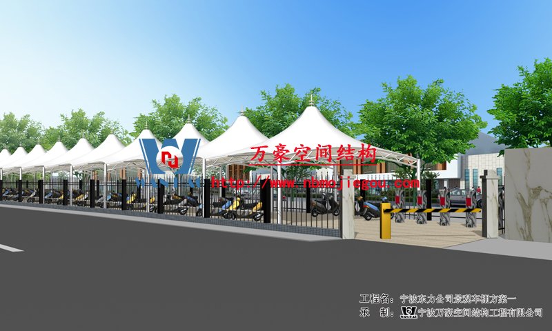 膜結構車棚是用膜材作為圍護構件,用鋼索和鋼桿(抑或是鋼架)作為膜材的支撐結構。同時膜結構柔順的曲面,廣闊的空間,半透明的室內(nèi)環(huán)境,是其具有膜結構停車棚的廣闊發(fā)展前景,而在2010年最具有代表性的就是萬眾矚目的世博軸,索膜結構將成為21實際空間結構發(fā)展的主流。