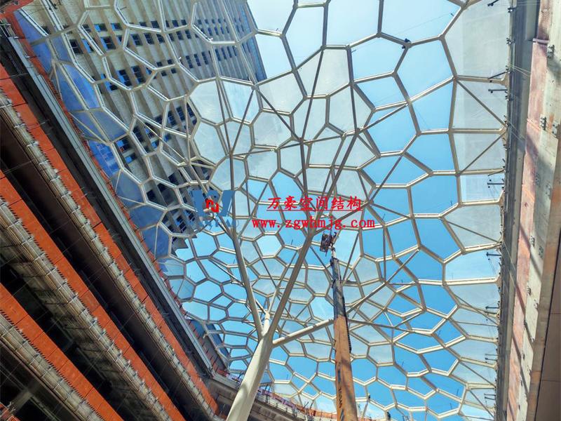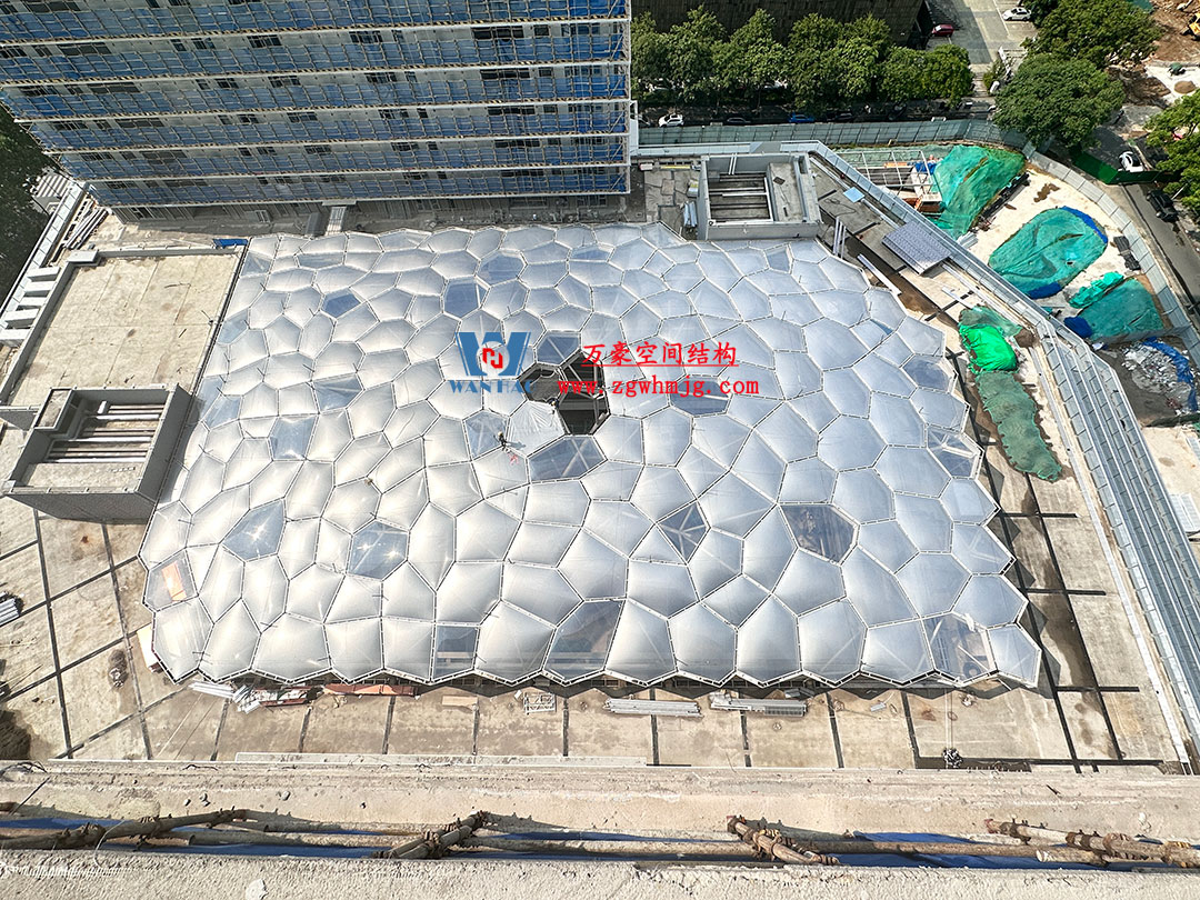 安吉縣昌碩小區(qū)地塊房產(chǎn)開發(fā)項目鋼結構天幕項目,該項目用鋼量約260噸,ETFE膜展開面積約3182平米。