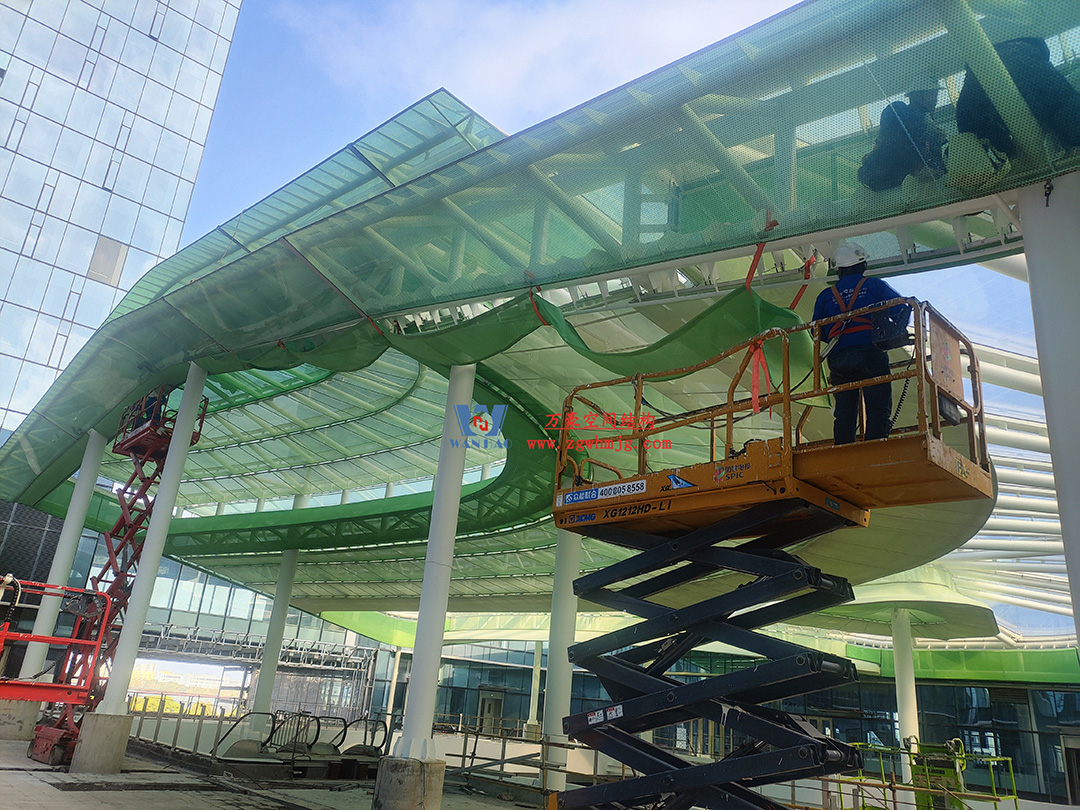 博多森谷項目中庭鋼膜結構工程位于余杭區良渚板塊,地處杭州城北,良渚未來核心區,城西科創大走廊輻射圈。該項目用鋼量約689噸,ETFE+網格織物膜展開面積12000平方米。