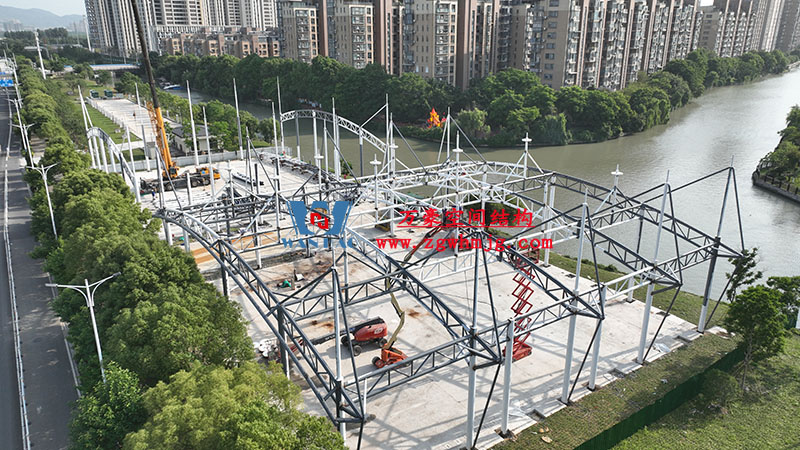 項目概述 - | 溫州惠民路西側綠地球場鋼膜結構工程,該項目總用鋼量約310噸,PTFE膜結構展開面積約7760平米。... |