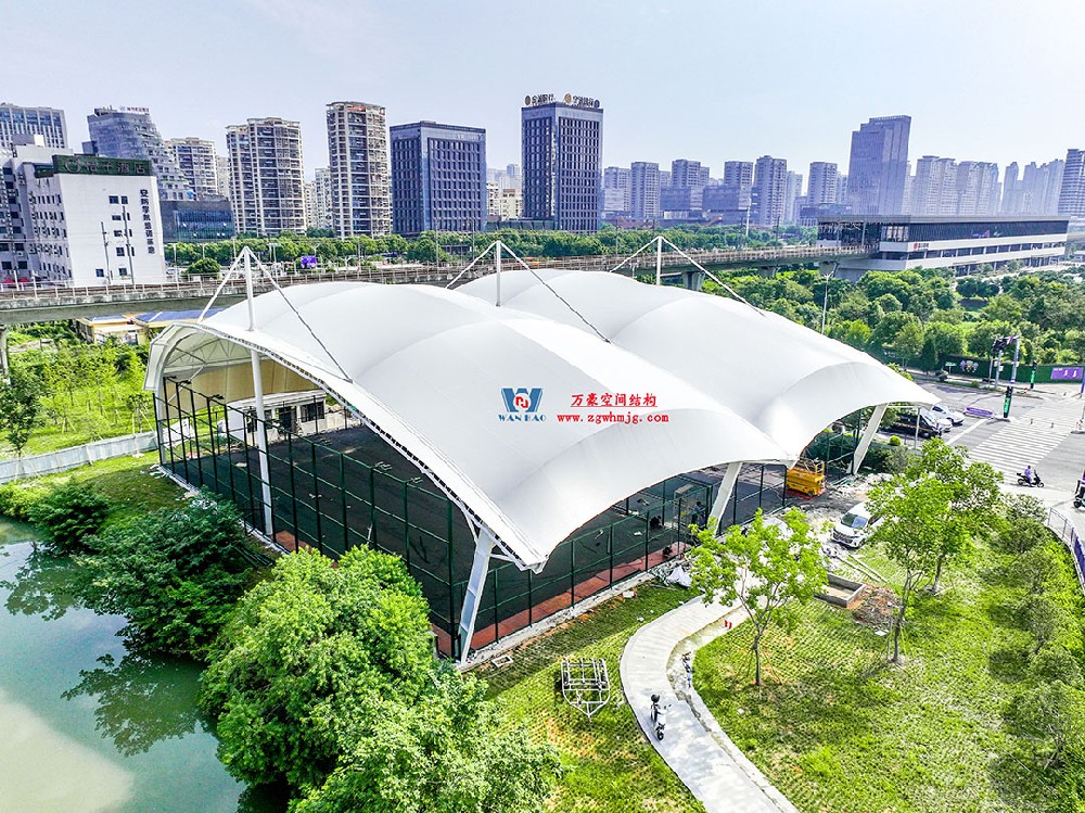 項目概述 - | 四川廣安共享體育場網球館膜結構位于廣安區官盛新區,是廣安共享體育場的一部分,PTFE膜結構展開面積5500平方米... |