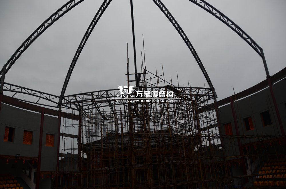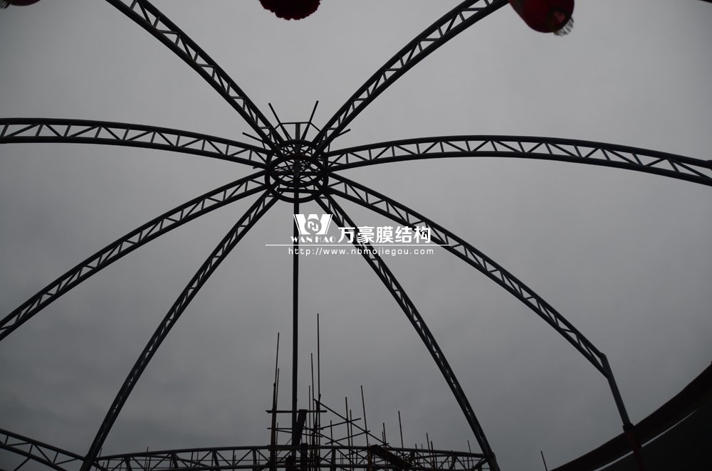 余姚天華村文化廣場鋼結構工程,本工程頂棚采用鋼結構制作。同時用膜結構蓋頂,美觀大氣。