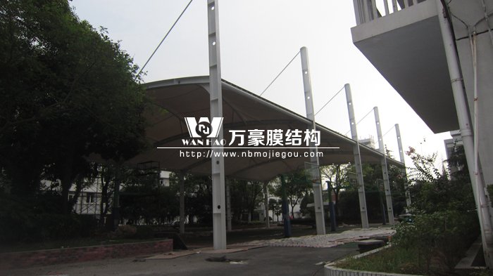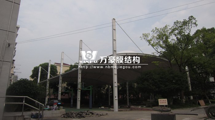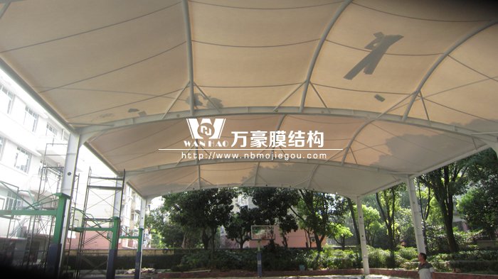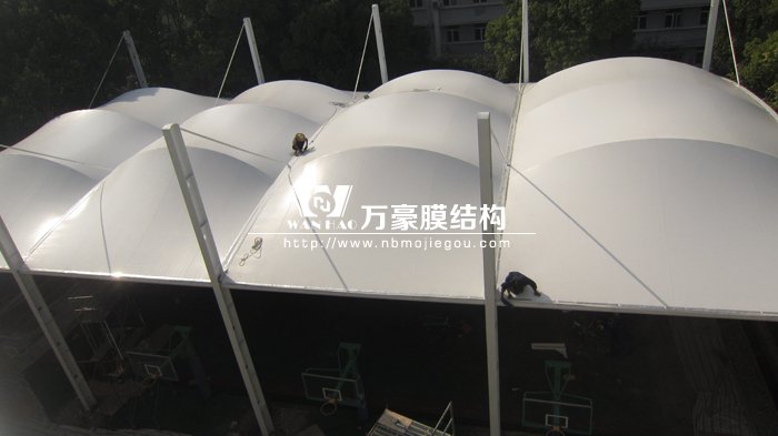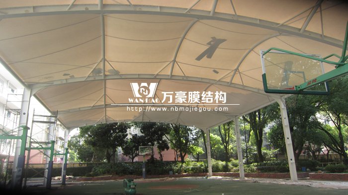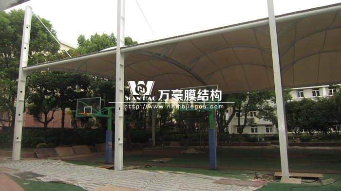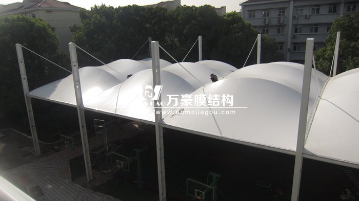 本項目位于上海閔行區第五中學內,球場采用膜結構蓋頂。