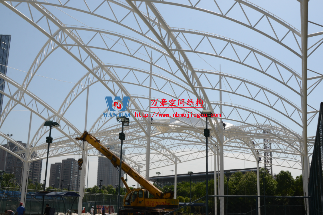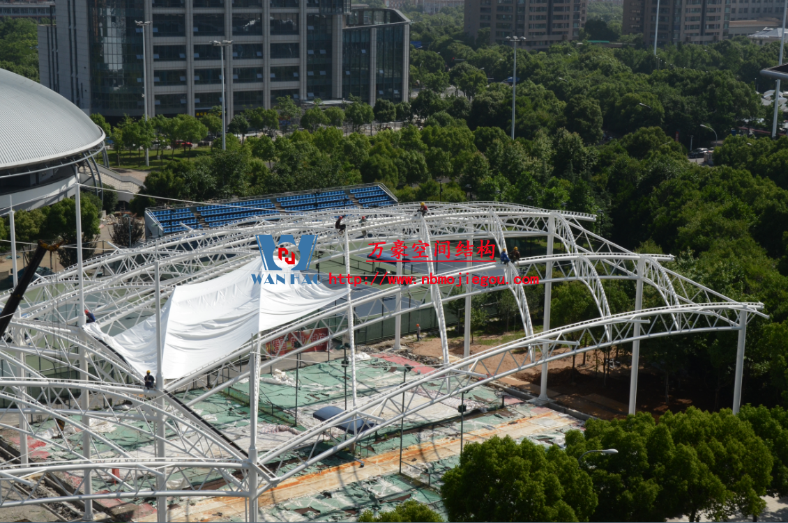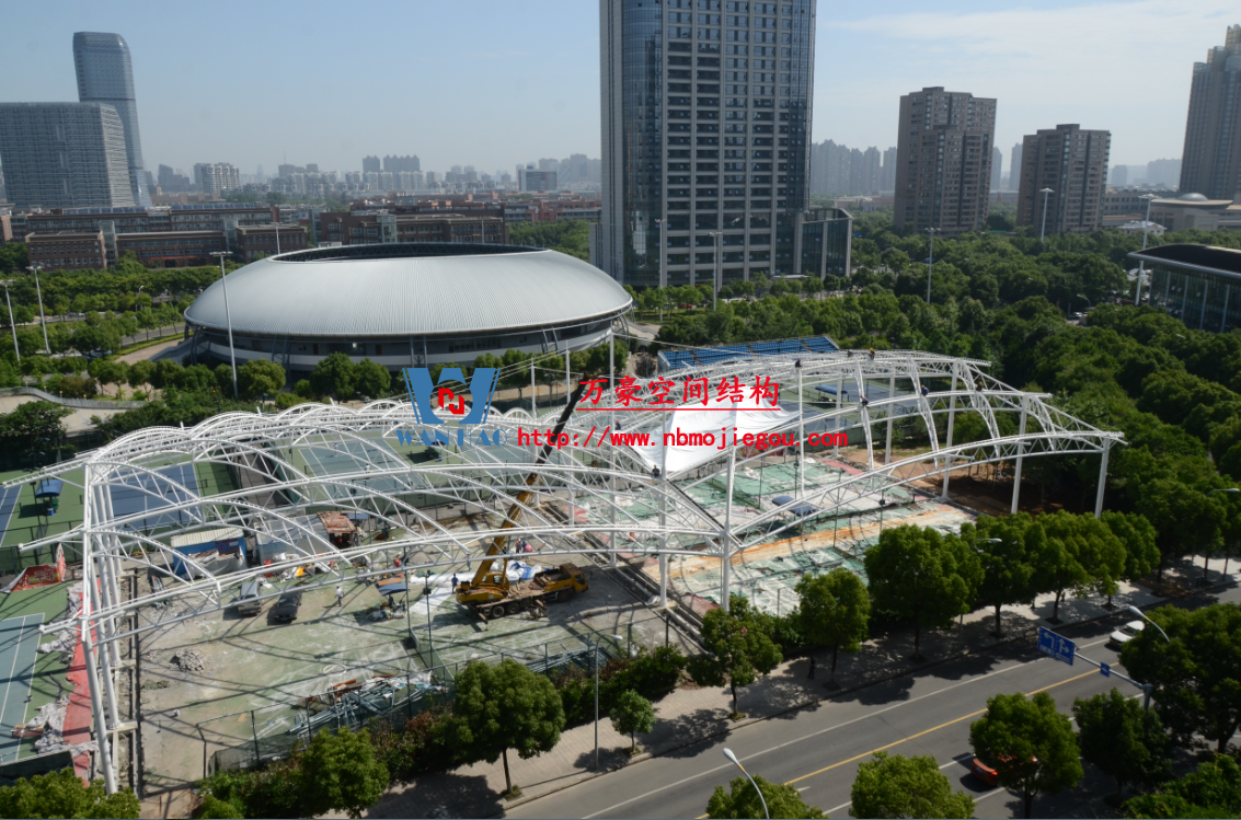 您所在的位置: 首頁(yè)>>工程案例>>膜結(jié)構(gòu)體育設(shè)施鄞州網(wǎng)球中心異形鋼結(jié)構(gòu)
