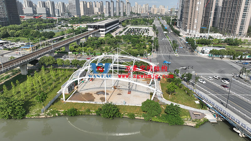 溫州惠民路西側(cè)綠地球場(chǎng)鋼膜結(jié)構(gòu)工程,該項(xiàng)目總用鋼量約310噸,PTFE膜結(jié)構(gòu)展開(kāi)面積約7760平米。