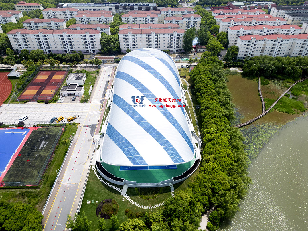 上海工程技術(shù)大學(xué)松江校區(qū)風(fēng)雨操場膜結(jié)構(gòu)位于上海市松江區(qū)大學(xué)城,該項目ETFE膜結(jié)構(gòu)展開面積約7000平米。