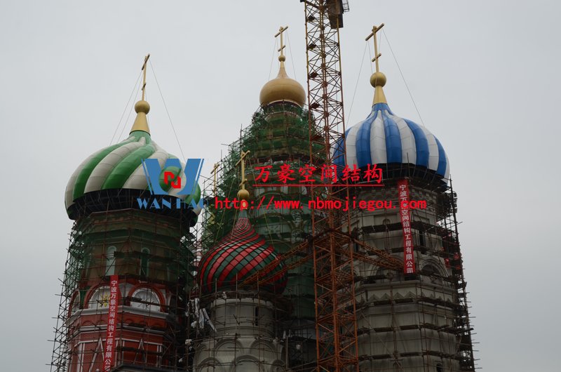 項目概述 - | 橫店影視城俄羅斯館屋頂經過近一周的時間,終于順利吊裝完成。頂部裝飾球最終達到20余噸,采用300多噸大吊裝進行吊裝。... |