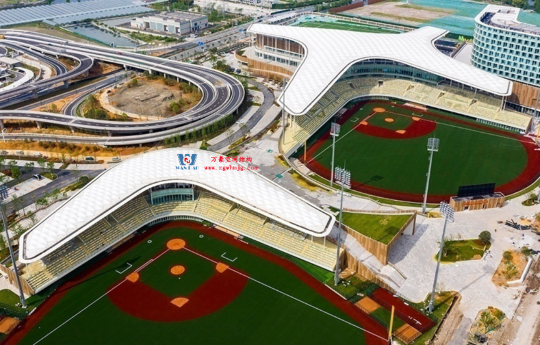 多年來,萬豪憑借其卓越的技術與嚴格的質量把控,承建了眾多地標性空間結構項目。在無錫奧體中心,萬豪打造的 ETFE 氣枕膜結構建筑,以其獨特的造型與高效的空間利用,成為當地的一張亮麗名片;在杭州亞運會棒壘球體育文化中心,萬豪運用大型 PTFE 反吊膜結構,攻克大跨度空間難題,功能與顏值兼備。在國際市場上,萬豪同樣成績斐然,澳大利亞希望島網球中心、印尼全天候碼頭倉庫等項目的順利交付,贏得了國際客戶的高度贊譽。