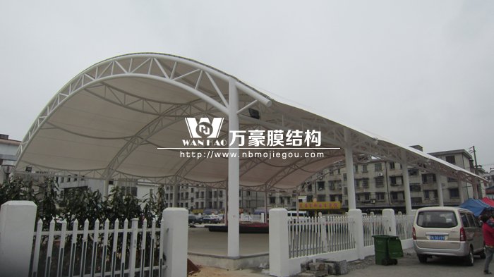 本工程位于寧波市鎮(zhèn)海區(qū)駱駝街道,業(yè)主單位為鎮(zhèn)海區(qū)駱駝街道辦事處,工程于3月17日正式完工驗收。因膜結(jié)構(gòu)藝術(shù)性、自潔性、大跨度、經(jīng)濟(jì)性、施工快等特點(diǎn),越來越多的建筑使用了膜結(jié)構(gòu),本次工程公司設(shè)計部先設(shè)計好,然后在公司的工廠把鋼結(jié)構(gòu)和膜材加工好,最后只需在工地進(jìn)行安裝,所以膜結(jié)構(gòu)的施工時間會比傳統(tǒng)工程要短。相信使用后一定會給當(dāng)?shù)鼐用駧砀憷纳睢?br />