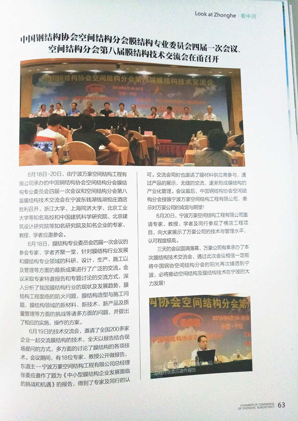 中河商薈專版以"中國(guó)鋼結(jié)構(gòu)協(xié)會(huì)空間結(jié)構(gòu)分會(huì)膜結(jié)構(gòu)專業(yè)委員會(huì)四屆一次會(huì)議、空間結(jié)構(gòu)分會(huì)第八屆膜結(jié)構(gòu)技術(shù)交流會(huì)在甬召開(kāi)"為題,報(bào)道了由我司主辦的第八屆膜結(jié)構(gòu)技術(shù)交流會(huì)。