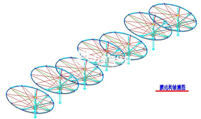 膜結構工程簡介:膜結構雨棚位于室外看臺A-E軸/1-20軸區域。膜結構雨棚采用張拉索膜結構,膜材采用進口法拉利1502t2膜材,雨棚柱頂標高32.643米,由7個長30.08米,寬17.38米的倒傘形狀的單體組成。