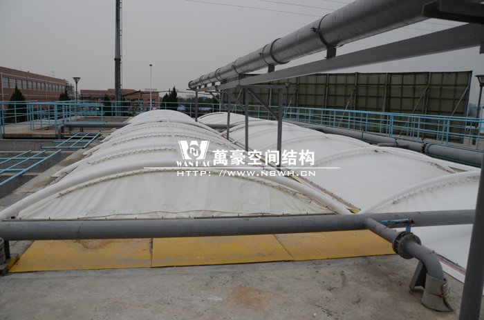 污水池膜結構廠家哪家專業?污水池張拉膜工程項目設計施工安裝加盟公司首選哪家?當然是寧波萬豪空間結構工程有限公司。