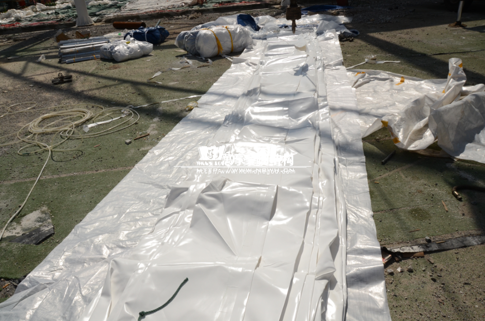 大家還記得寧波(鄞州)網球中心膜結構遮陽棚工程嗎?經過緊張的施工,鋼結構已完成并經初步驗收,膜結構開始安裝,得到了客戶高度的贊賞。