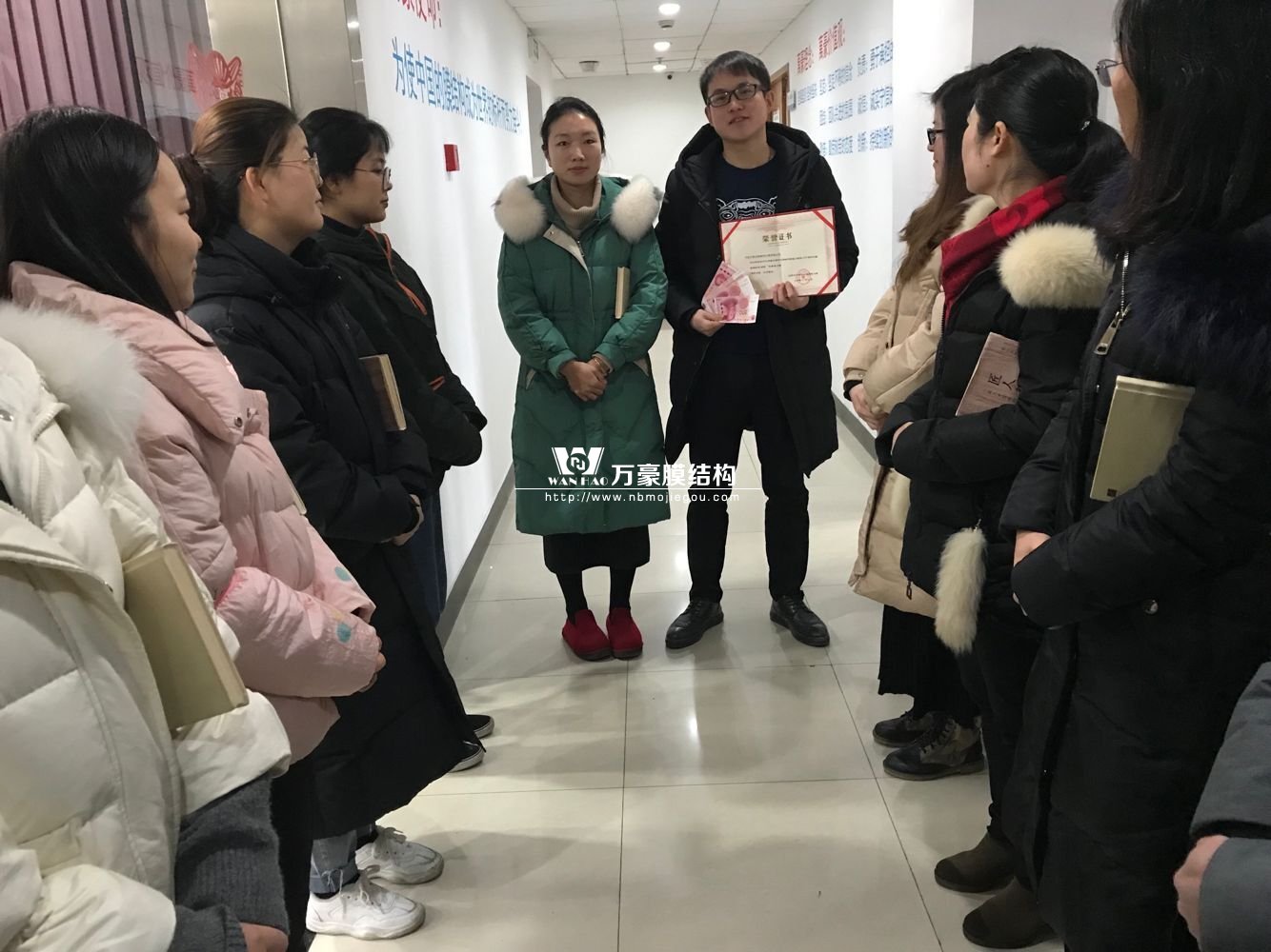 萬豪膜結構晨會:給常州大學項目經理頒獎