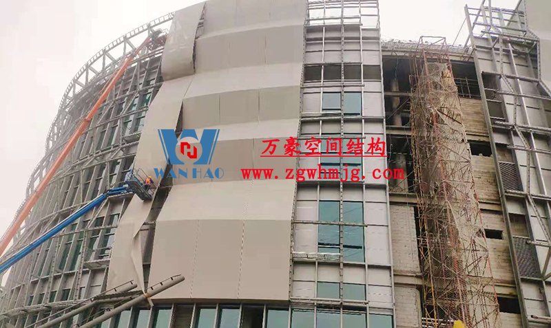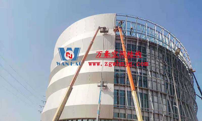 本工程項目為原有建筑物外立面網格膜裝飾及其支撐鋼結構體系安裝工程。外立面膜裝飾面面積14000㎡,用鋼量600噸。