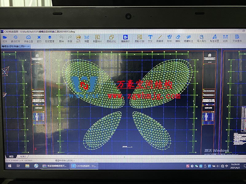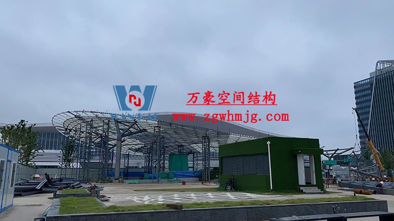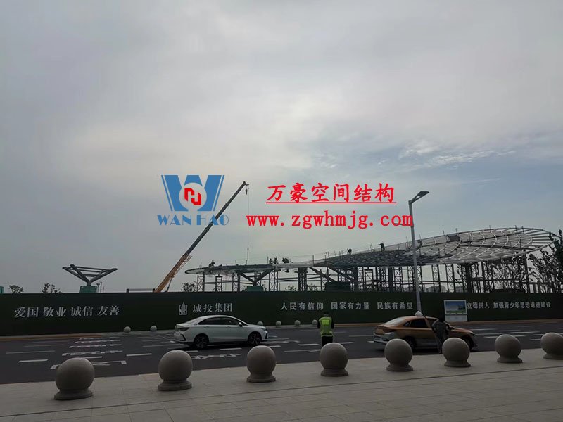 張家港高鐵站前大蝴蝶景觀膜結構工程進入第二階段二次結構拼裝與吊裝