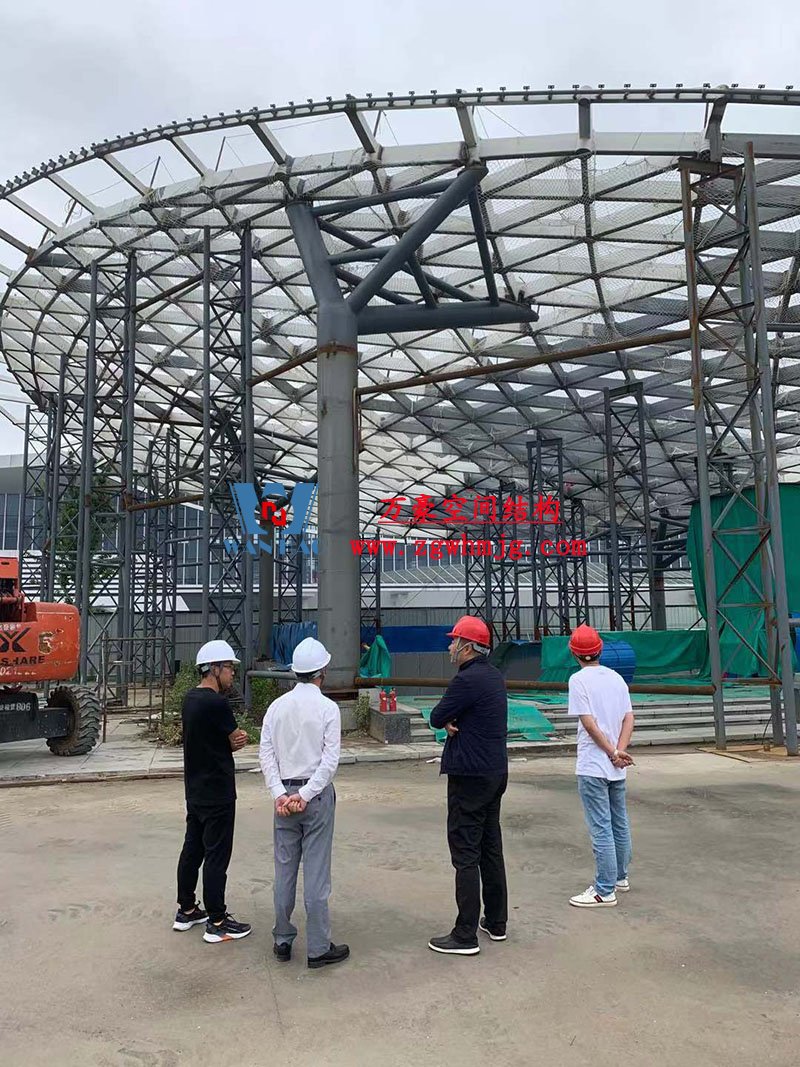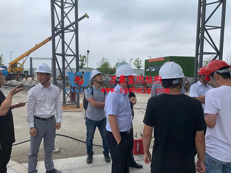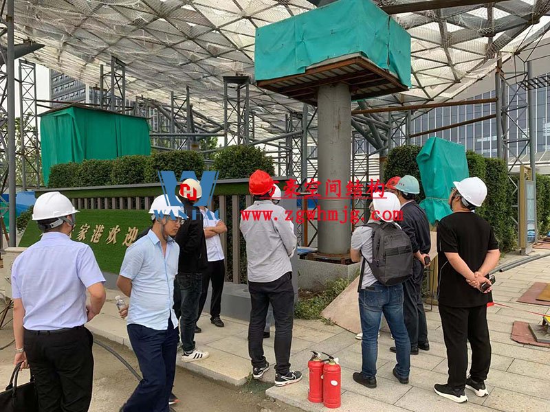 近日,萬豪總經理張總突擊張家港高鐵站前大蝴蝶景觀膜結構工程施工現場。經業主、設計院、總包、監理等各部門討論,首個蝴蝶翅膀卸載支撐一致達成意見,進入第二階段的二次結構及拼裝與吊裝過程。