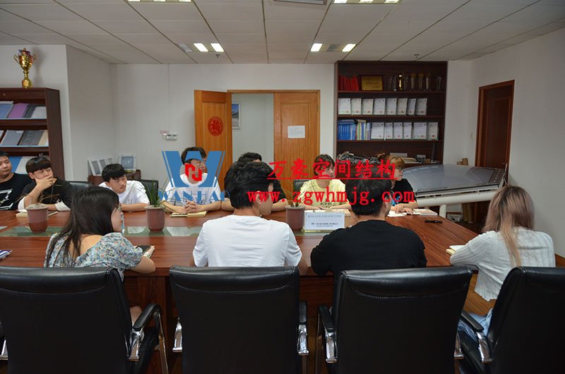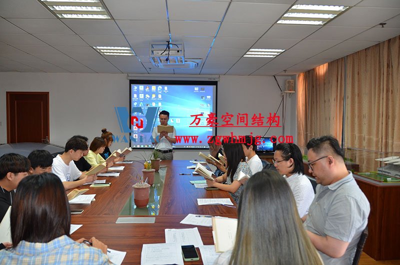 然后,我們的銷售主管教新員工們學習了公司晨會流程以及膜結構建設工程項目流程。