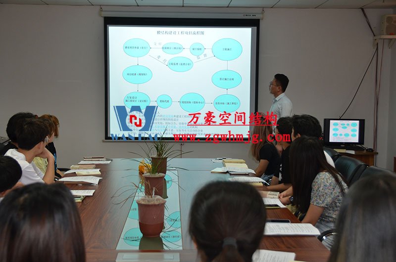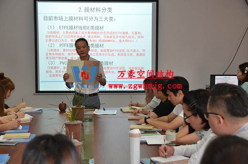 為更好的掌握膜結構技術知識,更專業的為客戶服務,2021年6月25日,萬豪空間結構對新進員工進行了膜結構專業知識培訓。