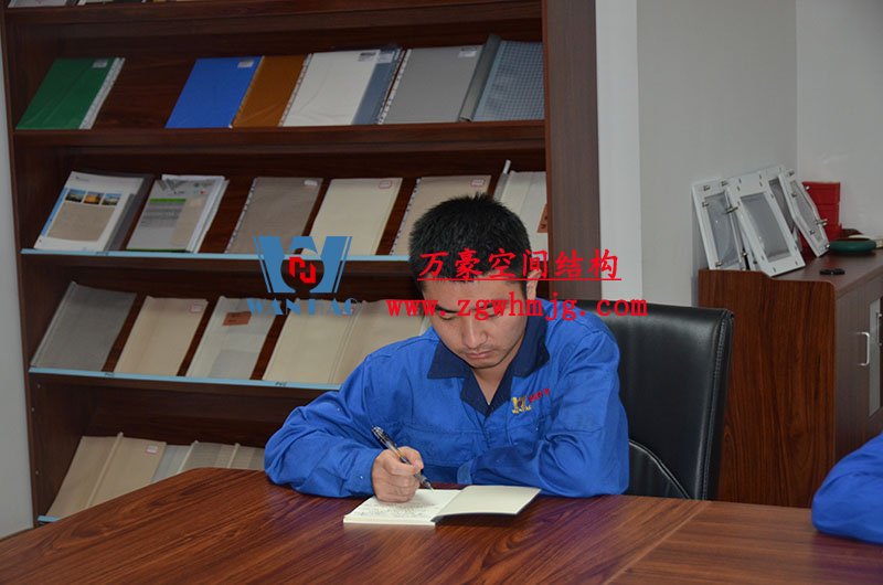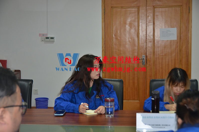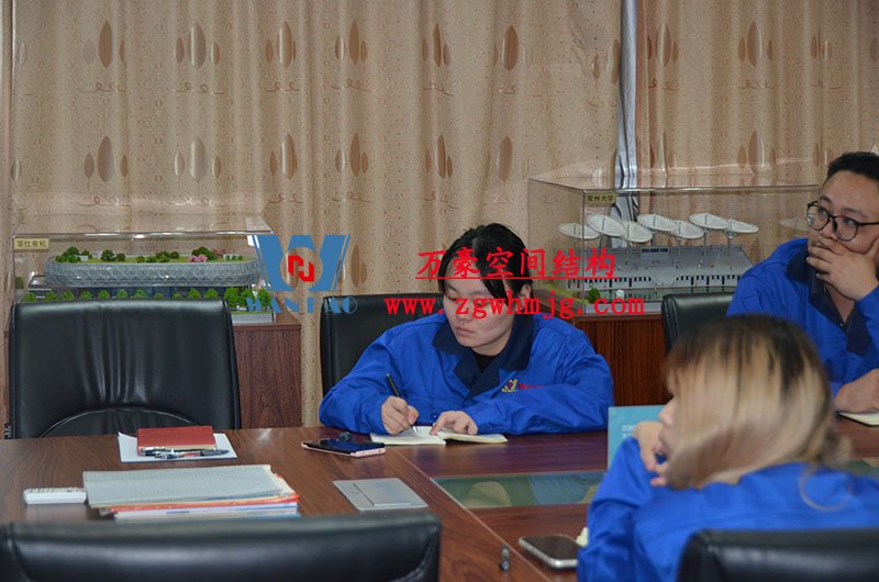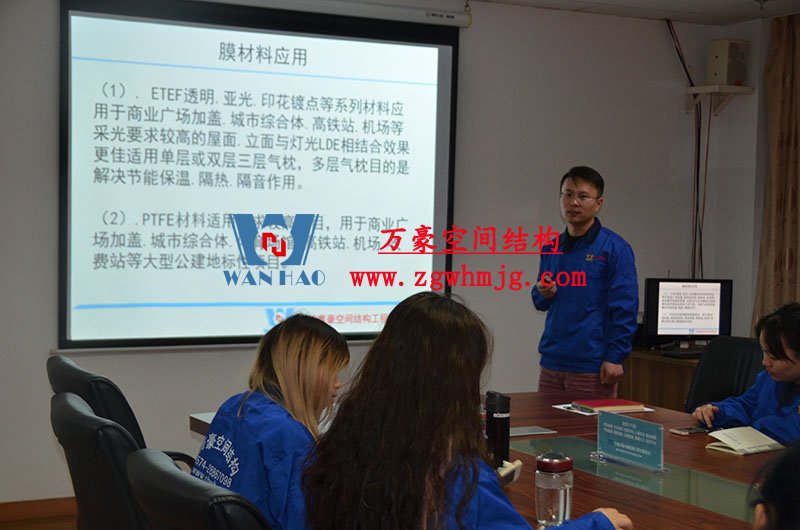 然后,我們的銷售主管教員工們學習了膜材料分類、膜結構優勢及應用領域、膜結構產品結構形式等。