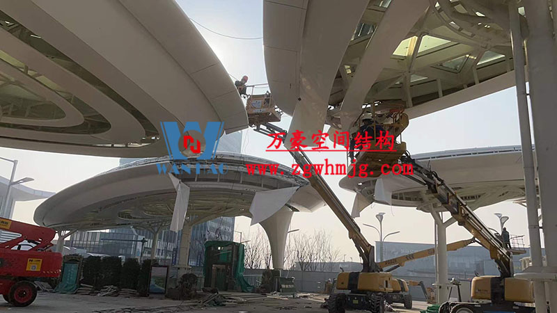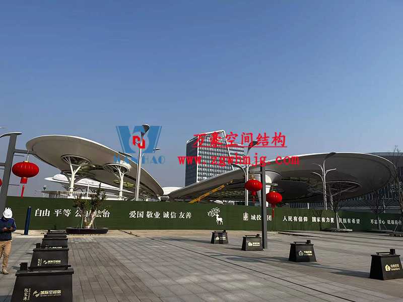 張家港高鐵站前蝴蝶造型天幕工程雙曲面空間鋼結構結合膜結構結合幕墻結合燈光呈現出來現代建筑工藝多元化組合化。