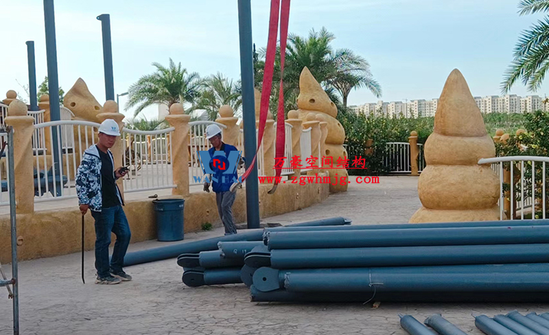 上海海昌海洋公園鋼膜結構工程項目位于上海市浦東新區南匯新城銀飛路166號園區內,該項目膜結構展開面積1300平米,由寧波萬豪空間結構工程有限公司承建。