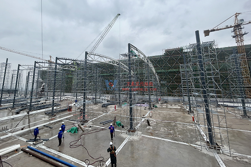 為圓滿完成建設任務,萬豪統籌安全防控和施工管理,保證施工安全、質量的前提下,合理倒排工期,精心組織、晝夜奮戰,優化施工方案,以實現節點工期為目標,統籌兼顧,切實保證施工生產穩步有序推進。工作人員爭分奪秒,掀起了搶工期保竣工的施工高潮,為完成目標全力沖刺。在施工人員緊抓時間節點的前提下,工程主體鋼構部分已接近尾聲,膜結構進場安裝也已排上日程。