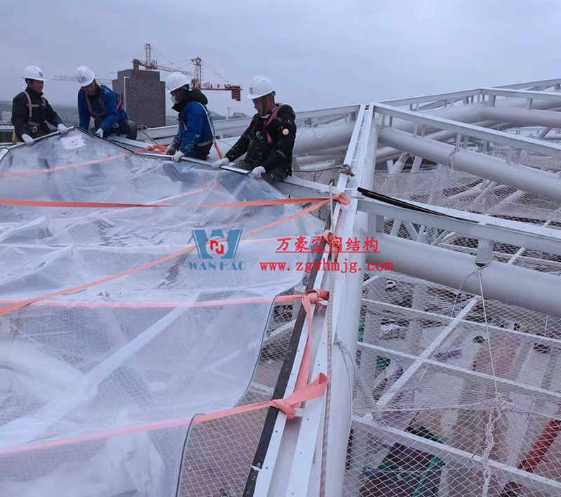 匯工匠精神,抓工程品質|合肥文一塘溪津門天幕鋼結構及ETFE氣枕膜工程最新施工進度