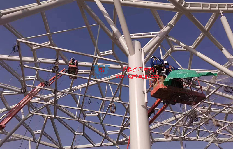 最近項目不斷傳回最新施工進展,目前鋼構主體已經完成,油漆的涂刷、二次鋼構以及排水管道的安裝也已接近尾聲,現在進行最后的收尾工作。樣品膜的試裝也已完結,等待后期整體鋼構以及排水管安裝完畢,開始進行膜體的安裝。期待工程的整體完工,讓我們能夠盡早一飽眼福。